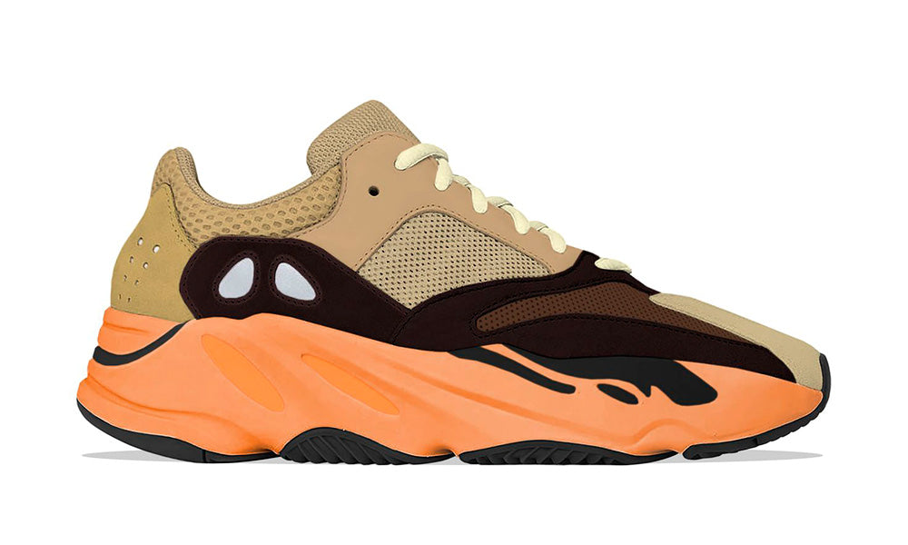 Med fokus på de nyere Yeezy 700 V2 og V3-silhuetter er den OG V1-silhuet lidt blevet overset i nogen tid. I 2021 fik den dog comeback med Bright Blue - og nu kommer den varme efterfølger: Enflame Amber. Med sennepsgul, orange og sort er stemningen varm og lækker - og helt bestemt en af de bedste Yeezys i længere tid. Køb dem inden priserne kun går én vej.