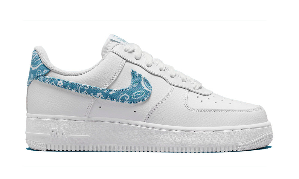 Air Force 1 "Blue Paisley" er en stærk release i den klassiske Air Force 1 silhuet. Udgangspunktet er den ikoniske hvide AF1 - men med et paisley-twist med det tværgående swoosh og heeltab i blåt paisley mønster. Et rigtig dope release.