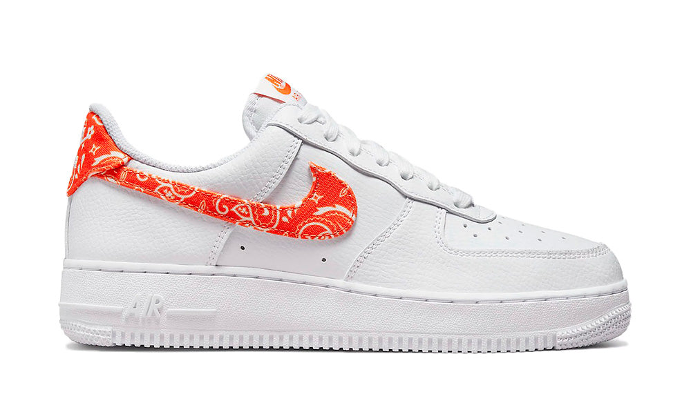 Efter flere sprøde Air Force 1s med paisley mønster, får vi nu den formentlig bedste farvekombination med Orange Paisley. Udgangspunktet er den klassiske hvide Air Force 1 men med et orange twist på hæl og swoosh. Den perfekte sommer Air Force 1.