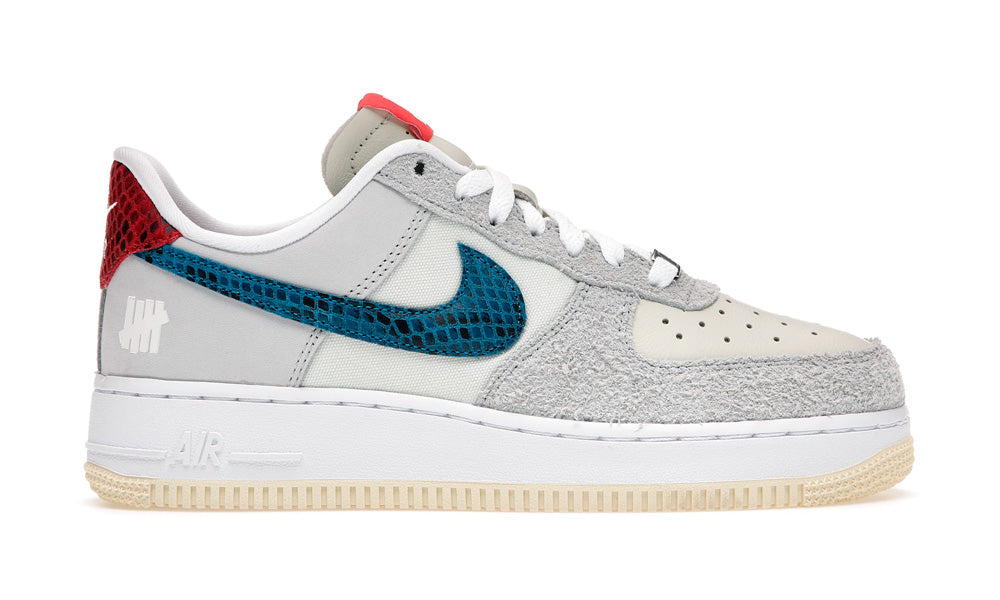 UNDEFEATED leverer en af årets bedste Air Force 1s, hvor der særligt leges med tekstiler og farvekombinationer. Swooshet er konstrueret i mørkeblåt faux slangeskin imens fluffy ruskind er monteret på fronten. Rødt faux slangeskin på heeltab tilføjer skoene det sidste finish - og det er bestemt en AF1 du bør tilføje til din rotation.