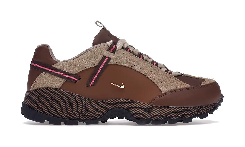 Det franske modehus Jacquemus med Simon Porte Jaquemus i spidsen har dropped deres første collab med dette par Air Humara LX i brun samt et lyst par. Skoene er konstrueret i mørkebrunt læder med paneler i lysebrunt ruskind. Detaljer i pink og guld gi'r skoene noget ekstra flex.