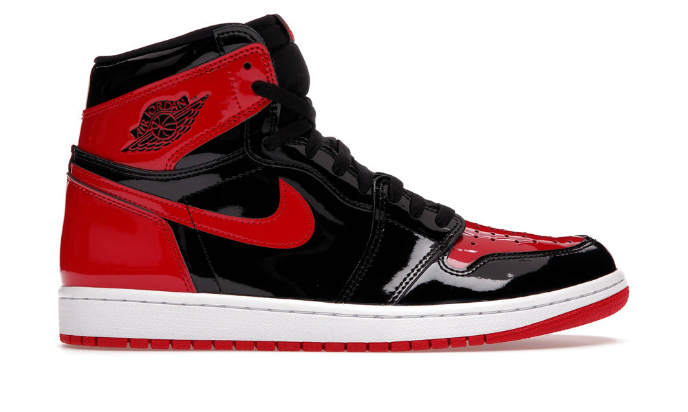 Air Jordan-brand lukker 2021 med et af årets stærkeste releases: AJ1 High "Patent Bred". Skoene er konstrueret i en lakeret læder overdel i den ikoniske Black/Red (Bred) aka Banned farvekombination. Priserne kan næsten kun gå en vej med dette drop (og det er op!).