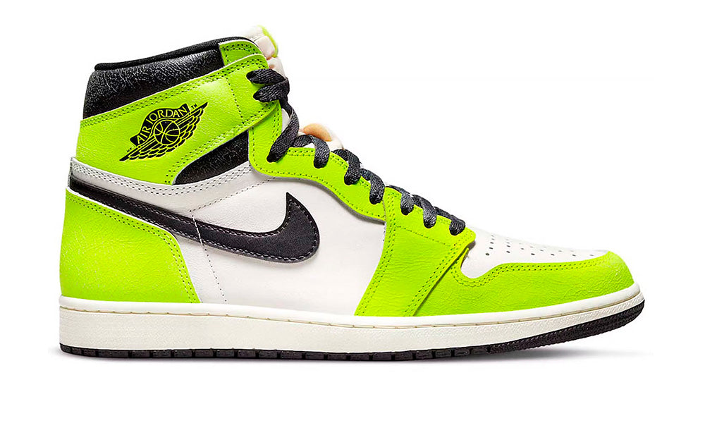 En elektrisk colorway i den ikoniske Air Jordan 1 High-serie er landet med Visionaire. Skoen er konstrueret i en fuld læder overdel med paneler i neon-gul, hvid og sort. Skoens tongue er lavet i et off-white skum materiale, som vækker associationer til Virgil Ablohs tidlige design. Tilføj et par til din samling med det samme!