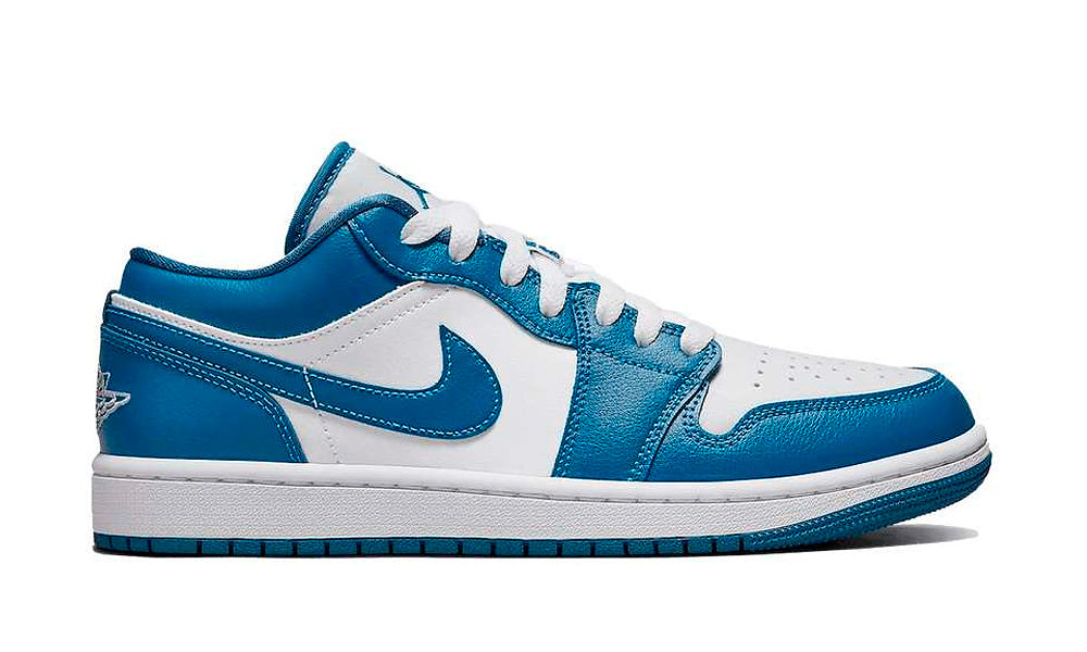 Den klassiske Air Jordan 1 Low fås nu i endnu en sprød blå colorway. Marina Blue læder pryder skoens upper og sål imens klassisk hvid konstrastere den mørkeblå farve til perfektion. Rock dem til en blå himmel for et fresh sommer-look.
