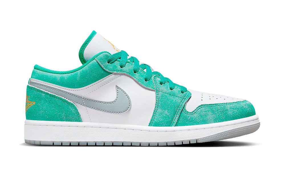 Den altid populære Air Jordan 1 Low kommer her i en rigtig dope colorway, der inkluderer vasket ruskind i en flot tyrkis farve samt paneler i hvid og grå. Det er virkelig en fed sneaker der vil give opmærksomhed på gaden.