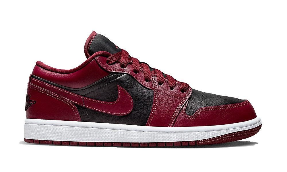 Air Jordan 1 Low "Cherrywood Red" er en sprød colorway i serien af den populære lave Air Jordan. Skoene er konstrueret i en fuld læder overdel i paneler af sort og bordeaux, imens en hvid midsole tilføjer skoene et konstrastfuldt element. En lækker og luksuriøs sneaker.