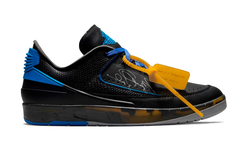 Virgil Abloh teamer up med Jordan-brand og genintroducere den undervurede Air Jordan 2 model. Skoene dropped første gang i 1986 og nu har du endelig chancen for at eje en klassiker. Skoene er konstrueret i premium sort læder med nuancer i blå. En gyl zip-tie fuldfører det stilede design. De er også released i en lys udgave.
