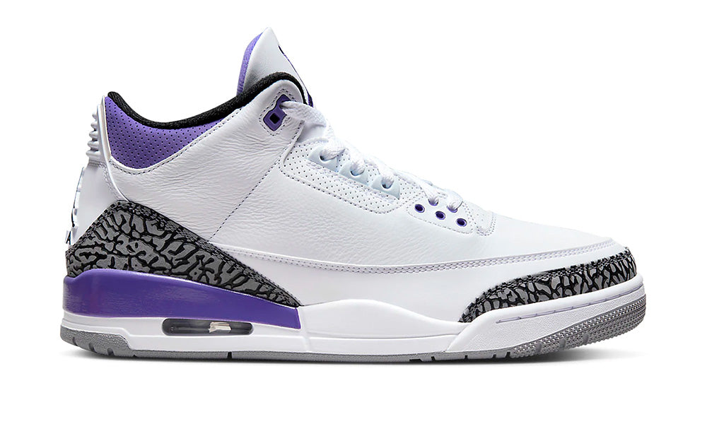 Air Jordan 3 "Dark Iris" er en nydelig sneaker med paneler i hvid, lilla og cement-grå. De lilla detaljer løfter virkelig det icey design - så du får en simpel men stilfuld AJ3, som du kan sporte til de fleste outfits.