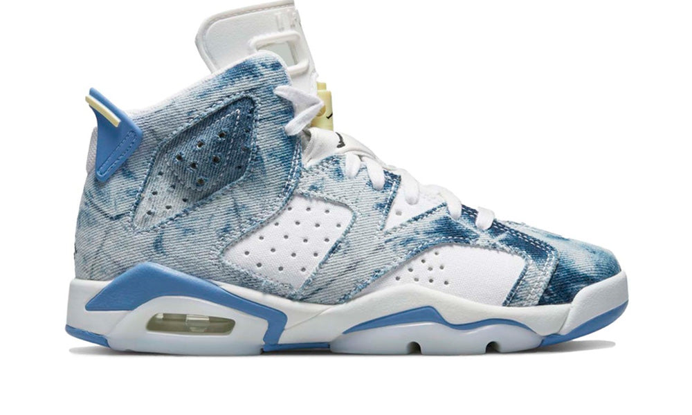 Air Jordan 6 "Washed Denim" er en sommerfrisk farvekombination af den oversete AJ6-model. Skoene er konstrueret i en hvid base med paneler i washed denim. Citron-gule detaljer giver skoene det sidste twist, og gør dem til en af de bedre Air Jordan releases i 2022.