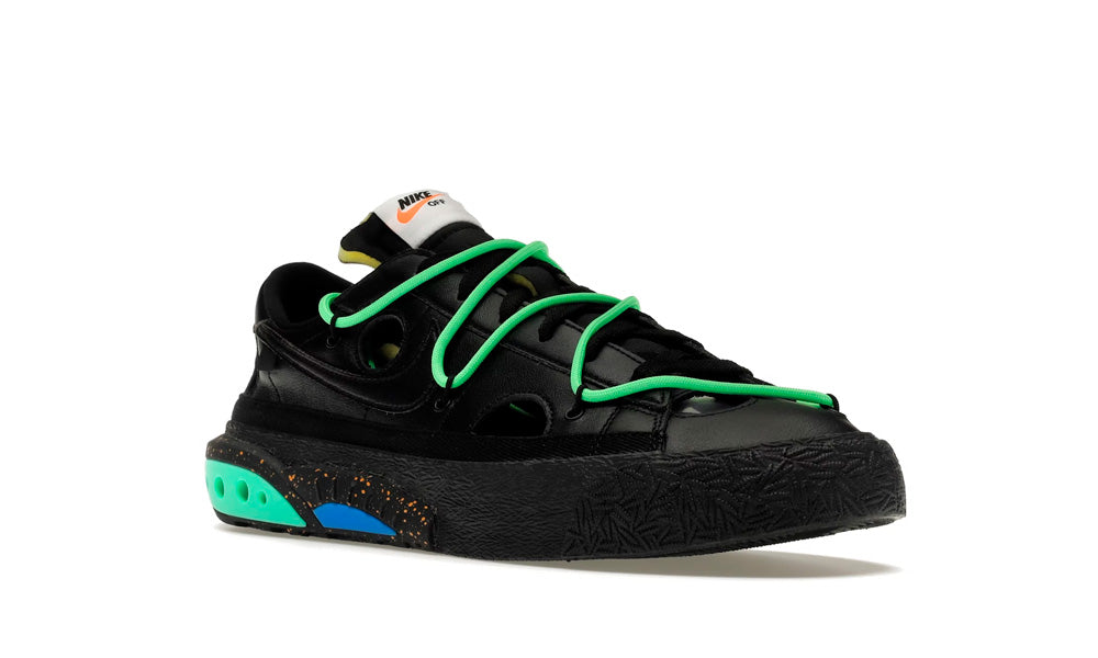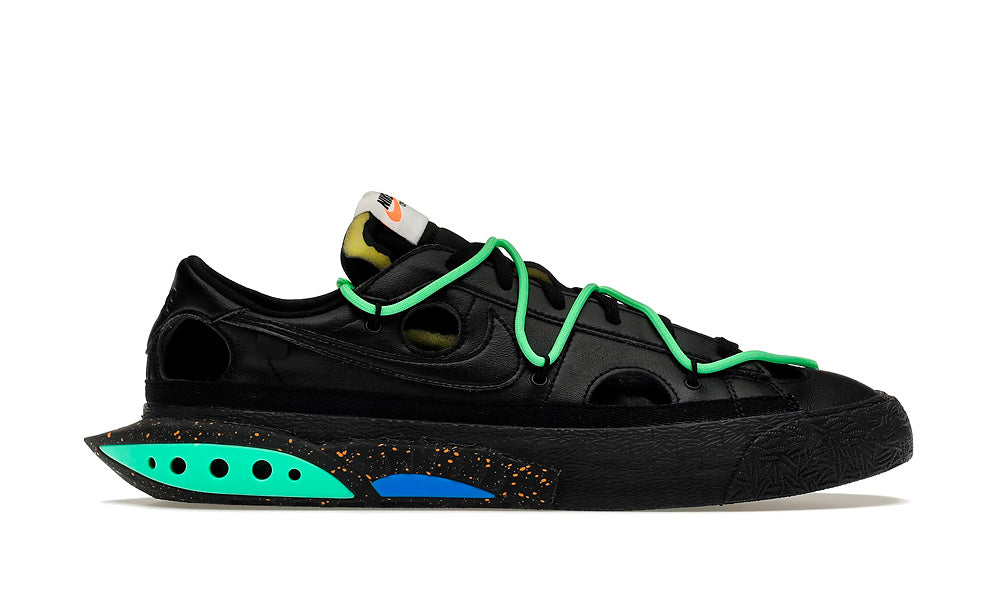 Streetwear label Off-White har fortolket den versatile Blazer Low silhuet til perfektion. Skoene er konstrueret i en sort læder overdel med gennemsigtige plastik huller imens electro green detaljer pryder skoene. Det giver dem et helt særligt pop - og det er med garanti et par der vækker opmærksomhed. De er også dropped i en University Red udgave.