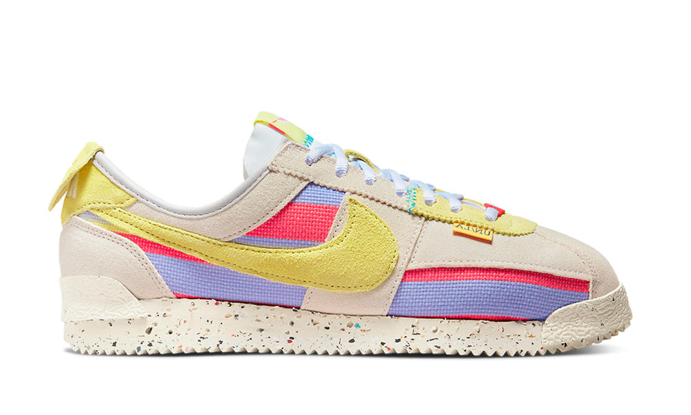 Union LA har designet 4 udgaver af den oversete Cortez model. Denne Lemon Frost farvekombination er måske den bedste, med paneler i gul, lilla, rød og beige. Kombinationen af ruskind og kanvas giver skoene et hippie-agtigt look - og du kan derfor virkelig tilføje dine outfits noget ekstra med et par på fødderne.