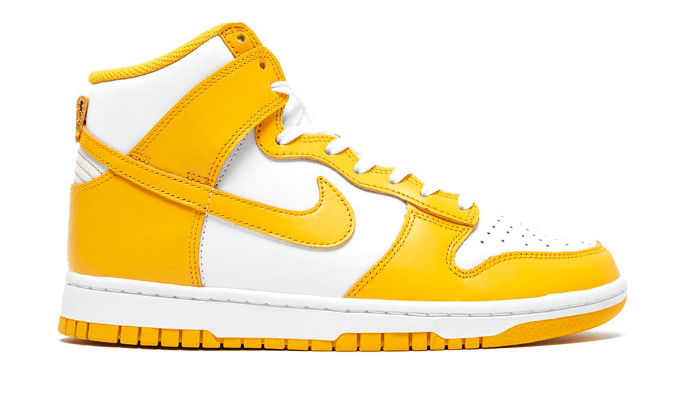 Endnu en smuk Dunk High dropper med denne Dark Sulfur farvekombination. Skoens colorblocking er tilsvarende den hotte Team Red, men farvevalget er en varmere senneps gul, der gør den til den helt rigtige sommersneaker.