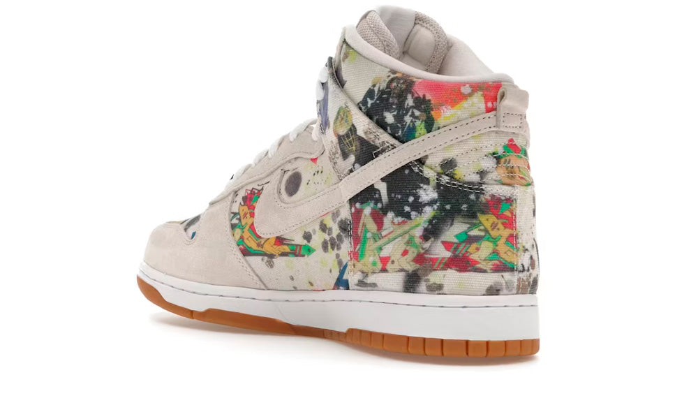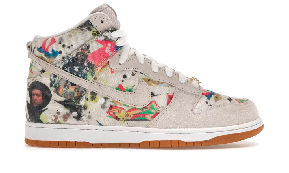 Dunk Low SB x Supreme "Rammellzee" er et mesterstykke af kreativitet og stil. Inspireret af den legendariske graffiti- og hiphop-kunstner Rammellzee, forener denne sko Supreme's gadeæstetik med Nike's ikoniske Dunk Low-design. Udstyret med en farverig grafisk overflade og luksuriøse materialer som læder og ruskind, skiller denne Dunk Low sig ud i mængden. Det er ikke bare en sneaker; det er en hyldest til subkultur og kunst.
