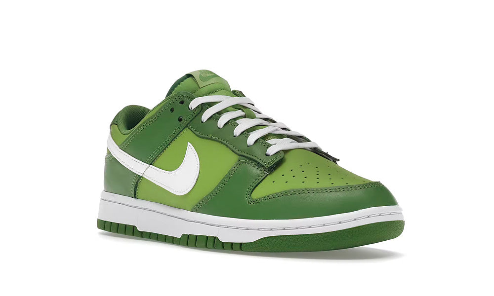 Dunk Low "Chlorophyll" er en veludført colorway på den ikoniske silhuet. Skoene er konstrueret i en læder overdel i paneler i mørke- og lysegrøn, imens et hvid swoosh og midsole skaber den perfekte kontrast. Spice dit næste outfit op med et par grønne kicks.