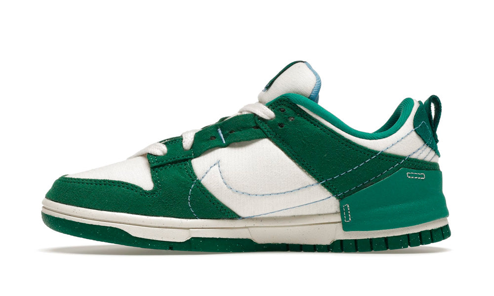 Nike bliver ved med at kaste fede Dunk Low af sig. Men nu får vi endelig en ny original silhuet med Dunk Low Disrupt 2. Det dekonstruerede look med en væsentlig mindre midsole end på den original Dunk Low Disrupt, tilbyder denne version 2 et mere organisk udtryk. Malachite-udgaven er konstrueret i grøn ruskind med toner i hvid og blå.