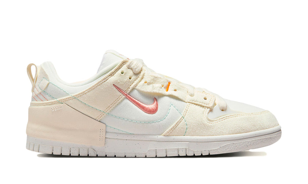 Dunk Low Disrupt 2-modellen er kommet for at blive - og efter den grønne Malachite, får vi nu den perfekte creme-farvet udgave. Pale Ivory er lavet i elfenbensfarvet fuzzy ruskind med en base i hvidt kanvas. Detaljer i turkis, orange og rød tilføjer skoene et æstetisk twist.