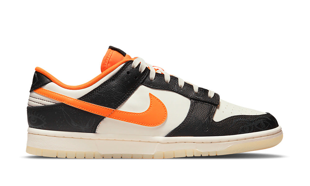 I 2021 fejrer Nike Halloween med denne sprøde Dunk Low. Skoene er konstrueret i en læder overdel i Sail, med sorte paneler og til sidst et græskar-farvet swoosh. Sålen er lavet i et glow-in-the-dark materiale, så du kan flexe på alle til din næste Halloween-fest.