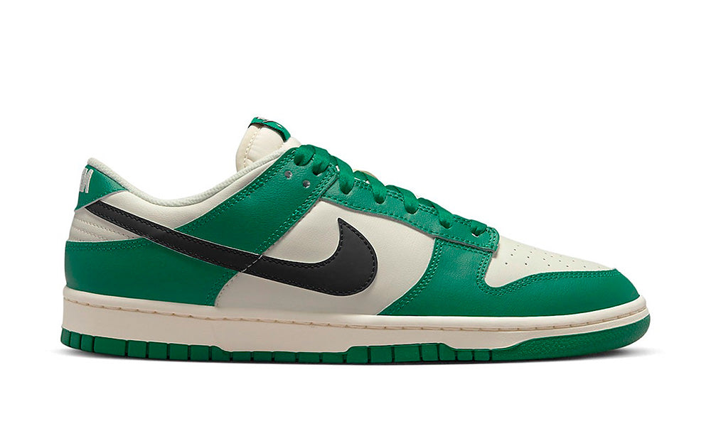 Dunk Low SE "Lottery" er released samtidig med den grå Jackpot-udgave. Denne version er konstrueret i en elfenbensfarvet overdel med paneler i grøn, imens det sorte swoosh tilføjer lidt kontrast. Der medfølger en mønt til skoene, som kan bruges til at kradse det yderste lag swooshet. Farverne fungerer virkelig godt sammen - og det er en Dunk Low der bør være på dine ønskeliste.