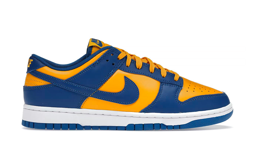 Dunk Low "UCLA" er baseret på University of California Los Angeles' blå og hvide logo. Skoene er dropped samtidig med en rød/hvid USC-udgave. Dette par er konstrueret i en mørkeblå og gul overdel imens en hvid midsole tilføjer skoene noget kontrast. En super fed Dunk Low.