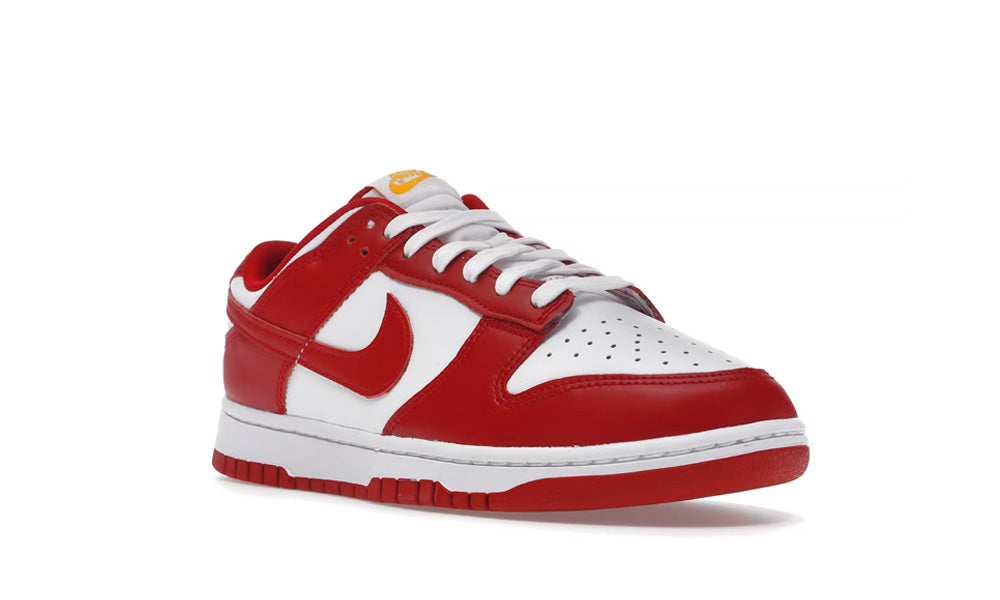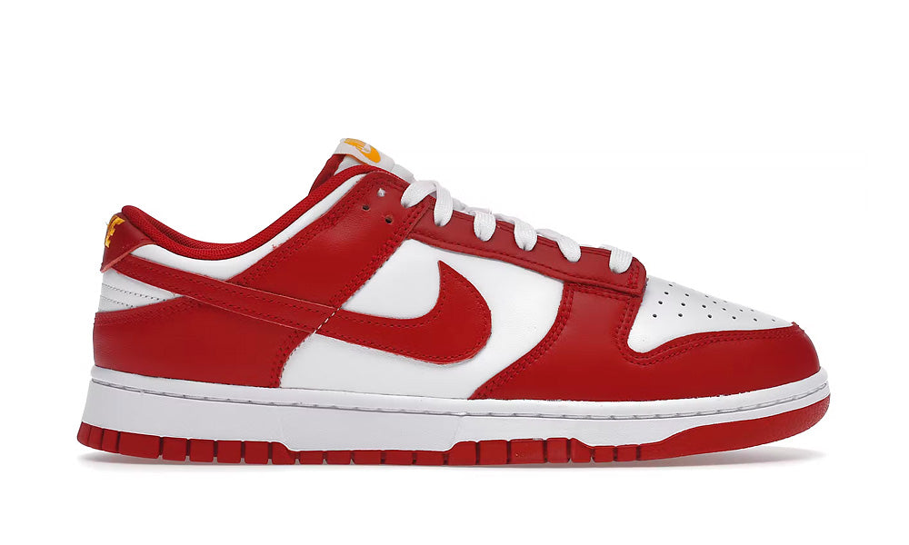 Dunk Low "USC" er inspireret af farvekombination på det ikoniske University of Southern California med detaljer i rød, hvid og gul. Det er den perfekte Dunk Low med et rødt tema, som du kan sporte til de fleste outfits. De er released samtidig med UCLA-udgaven. Tilføj et par til din samling i dag.