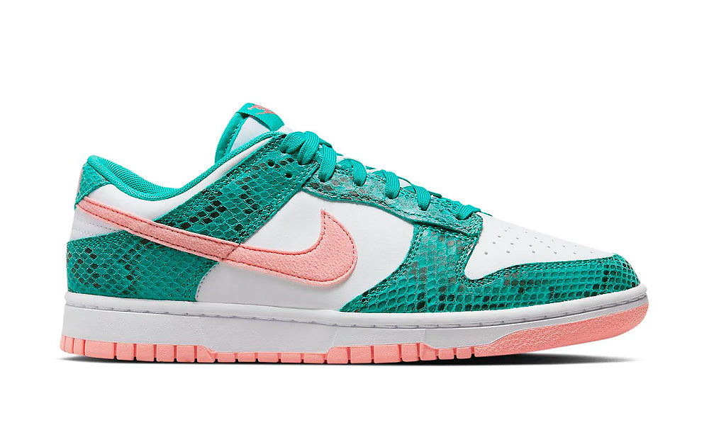 Washed Teal Snakeskin er en fræk colorway i den populære silhuet. Skoene er konstrueret i en base af hvidt læder med paneler i krikand faux snakeskin. Det samlede resultat er en luksus Dunk Low, som virkelig kan peppe dine outfits op.