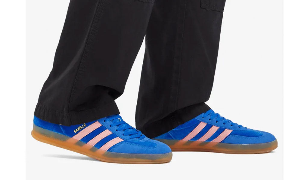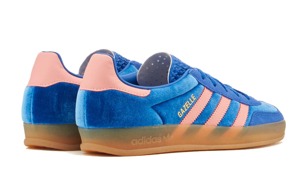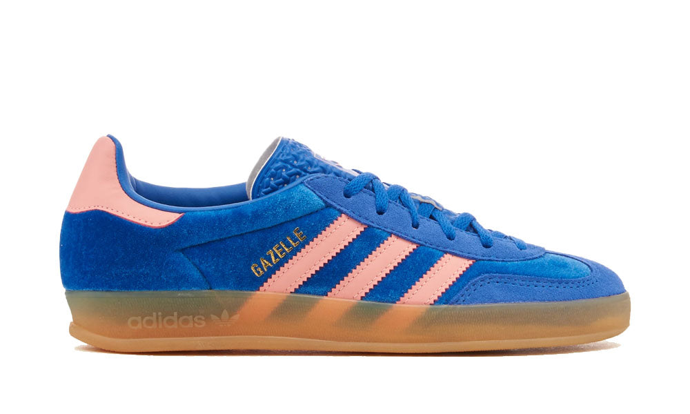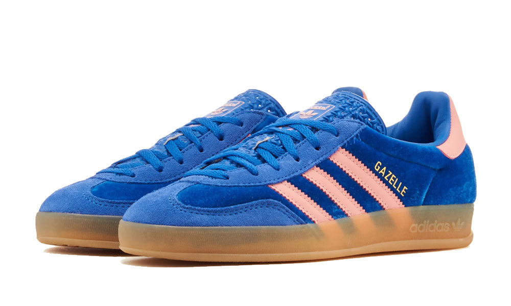 Gazelle Indoor "Blue Semi Pink Spark" kombinerer en frisk farvekombination af blå og lyserød for et iøjnefaldende look. Skoene er lavet af blåt ruskind med lyserøde striber og detaljer, der skaber en dynamisk kontrast. Den klassiske gummisål fuldender designet og giver både stil og funktion, perfekt til dem der ønsker et moderne twist på en tidløs klassiker.