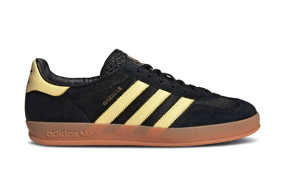 Gazelle Indoor "Core Black Almost Yellow" byder på et dristigt og iøjnefaldende design. Den sorte ruskindsoverdel kontrasteres af næsten gule striber, hvilket tilføjer et dynamisk element til den klassiske sneaker. Med sin gyldne hælkappe og den ikoniske gum sole er denne sko en perfekt balance mellem sportslig nostalgi og moderne streetwear-æstetik. Denne Gazelle-model er ideel for dem, der søger at kombinere komfort med en markant stil.