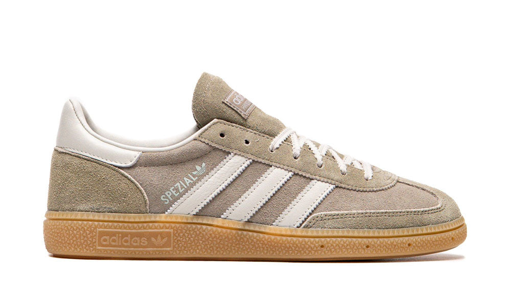 adidas Handball Spezial Silver Pebble Orbit Grey bringer tidløs minimalisme ind i den ikoniske silhuet. Sneakeren er udført i blødt ruskind i gråtoner med hvide 3-stripes og hældetaljer, som skaber et rent og klassisk look. Den brune gummisål fuldender designet og tilføjer både komfort og retro-charme, der gør den ideel til både casual og streetwear-stil.