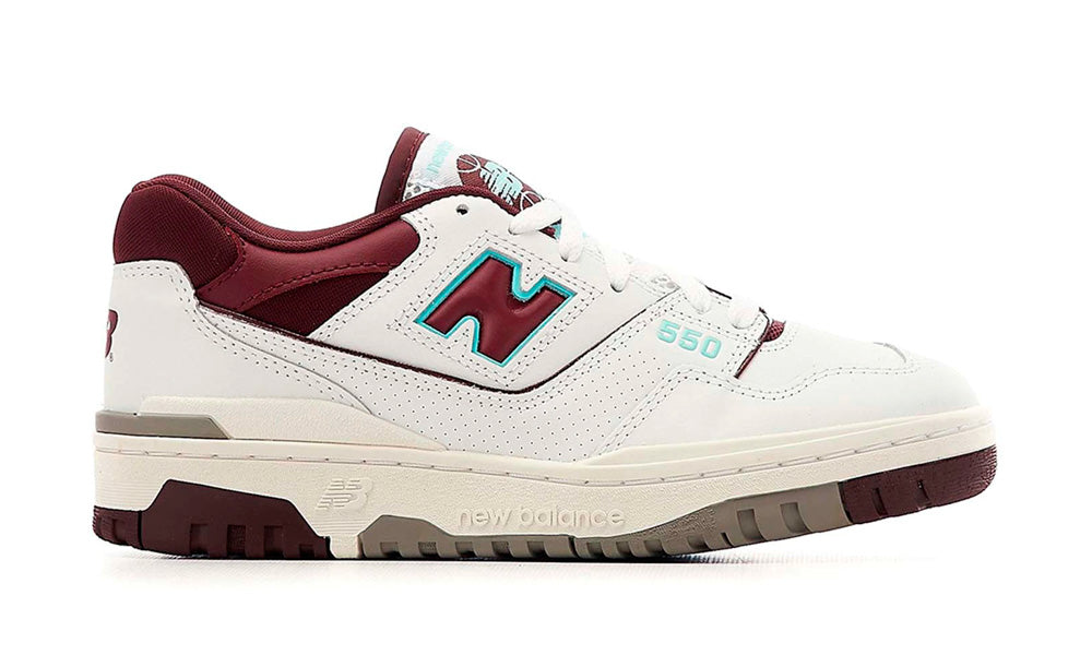 New Balance 550 "Burgundy Cyan" er endnu en dope release i serien af den vintage New Balance 550. Skoene er konstrueret i en læder overdel i hvid med paneler i mørkerød og turkis. Den vintage sole fuldfører det elegante design - og resultatet er en NB du bør have i din rotation.