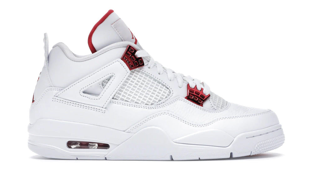 Nike genintroducerer en af de ikoniske metalliske colorways, der blev brugt på Jordan 1-modellen for første gang tilbage i 1985. Nu har Air Jordan 4-modellen fået samme behandling, i lækker hvidt læder og med den iøjenfaldende røde metalliske farve på eyelets, bubble og indersiden af tungen.