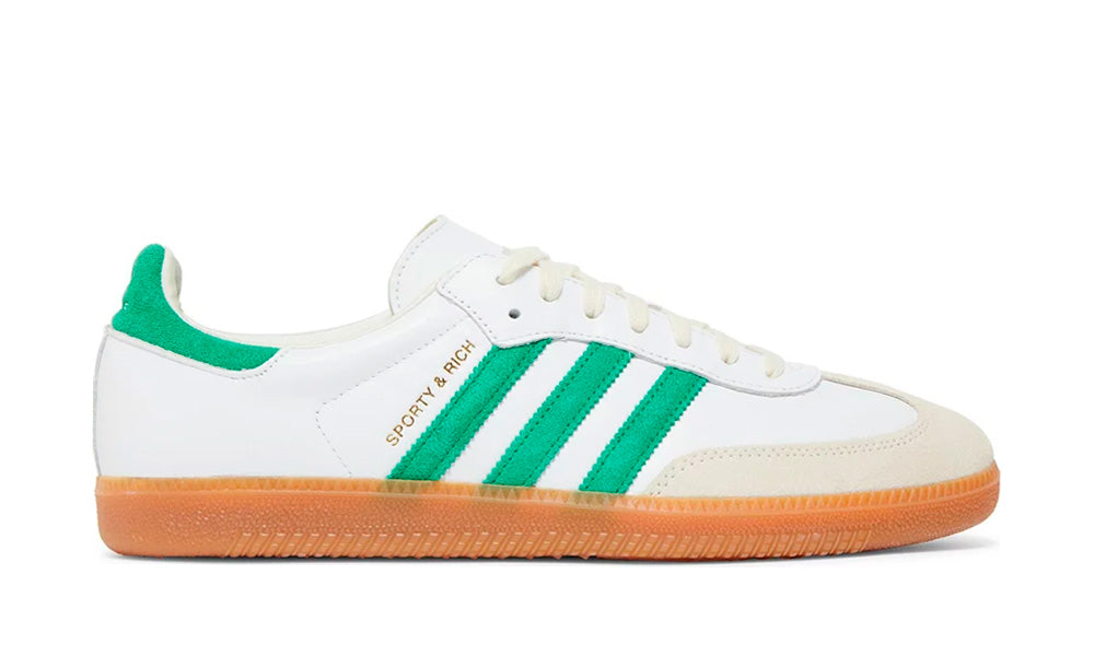 Emily Obergs hotte streetwear-mærke Sporty & Rich er gået sammen med adidas om en rigtigt stærk udgave af den populære Samba OG-model. Skoene er konstrueret i hvidt læder med grønne detaljer imens gråt ruskind og en gum-sole fuldfører det elegante design.